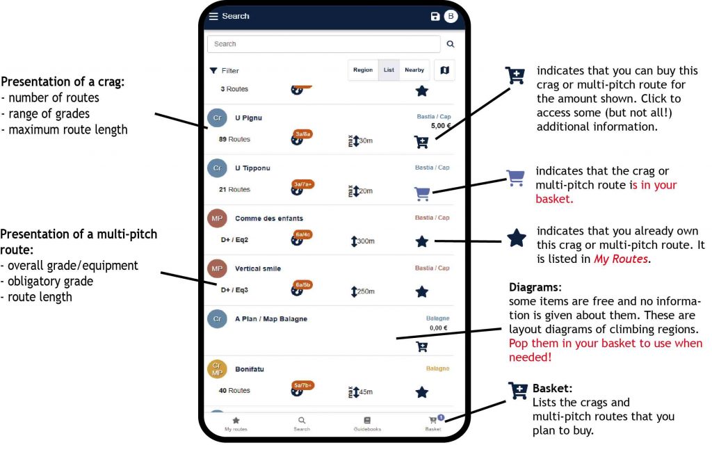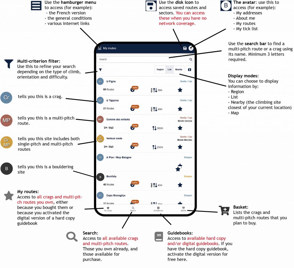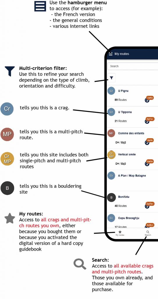 N.B.: When you have many routes and crags, the multi-criterion filter is an essential tool for effective searches.